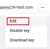 next to your certificate and select Disable key (see the figure below).
