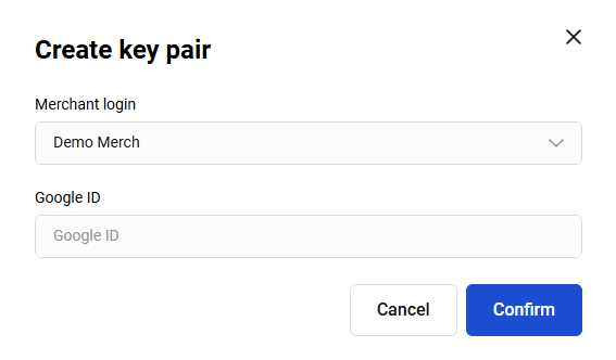 - Fill in the Google ID field with your Google Merchant ID obtained from Google Pay during integration with Google API, then click Confirm.