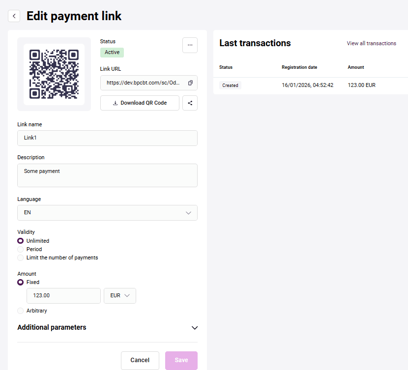These operations are invoked by corresponding buttons on the Transaction details page. See the detailed description of each operation below.