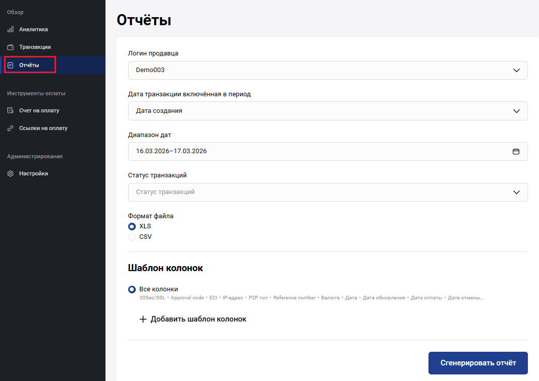 | Дата создания | Дата и время создания заказа. |
