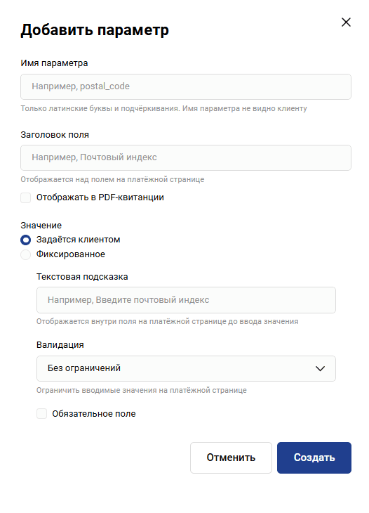 | Отправка уведомлений клиенту по СМС | Если включено, клиент будет получать СМС-уведомления |