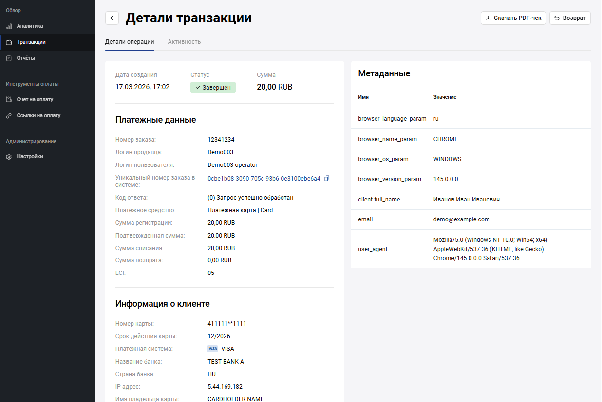 | IP адрес | IP-адрес плательщика. |